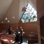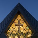 日本キリスト教団永福町教会は、住宅地の中にあり毎週30名ほどが礼拝に集まる木造の小さな教会である。その礼拝堂のイメージは、〈わたしはぶどうの木、あなたがたはその枝である。人がわたしにつながっており、わたしもその人につながっていれば、その人は豊かに実を結ぶ。わたしを離れては、あなたがたは何もできないからである。(ヨハネによる福音書 15:5)〉に繋がり象徴的なステンドグラスを前面に備えた。木造大断面工法による瀟洒な会堂である。