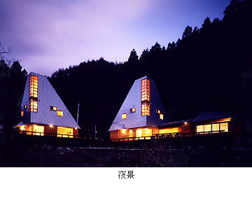 各山荘のアウトドアリビングであるデッキのレベルを変化させることで共通の広い場所を持ちつつ各々の独立性を守った。群造形の美しさを大切にして大きな屋根による垂直感とデッキによる水平の広がりの伸びやかさを目指している。