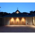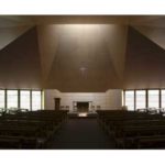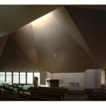 この地に教会が建設されて50年がたち、建物老朽化にともなう建替え計画である。閑静な住宅街の中にありながら、存在を主張しすぎないよう庇の高さを抑え教会のボリュームを和らげた。中庭空間は、親しみやすく住宅地の中にある誰もが集えるポケットパークとなる場の創出を目指した。内部空間は、南東に向けた高窓から聖堂にステンドグラス越しに陽の光が射し込み、主日のミサの時間には内陣に豊かな光が降り注ぐ聖堂空間をイメージした。また、限られたボリュームに平面的な奥行き感を与えるため、内陣北側の広場を緑化し外の内陣としてしつらえた。格子越しに北側の安定した光環境の緑を取り込むことで、聖堂に豊かな拡がりを感じられる空間を創ることを目指した。